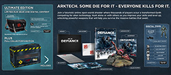 Edition collector DefiancePrévu pour le 2 avril, l’édition collector de Defiance proposera entre autre un artbook exclusif, une figurine limitée, un DVD bonus making-of du jeu, la bande-son et quelques dlc… |