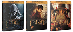 Quatres steelbook The HobbitPrévu pour le 17 avril, le film de Peter Jackson sera disponible dans les bacs en steelbook G2 avec trois visuels différents comme sur l’image à gauche et un quatrième pour la version 3D… |