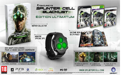 Splinter Cell édition UltimatumPrévu pour le 22 août, cette édition collector contiendra en plus du jeu une montre digitale Special OPS, la version courte du comic book (24 pages) ainsi que plusieurs dlc… plus d’info |