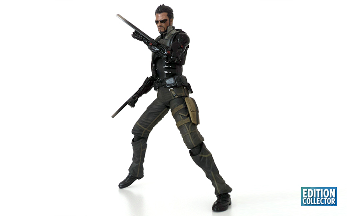 On termine ce déballage par la réplique d’Adam Jensen, édité par Square Enix, ce modèle d’action figurine est vendu autour des 45€ sur la boutique en ligne d’Eidos. La finition globale est de bonne facture, mais laisse néanmoins apparaître quelques articulations disgracieuses, ainsi qu’un aspect plastique qui font de cette figurine plus un jouet qu’un objet de collection. Mais au moins on a le droit à une figurine fidèle au modèle d’origine !