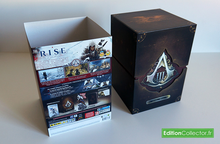 Et voilà, après de long mois d’attente Assassin’s Creed 3 débarque enfin dans nos console pour notre plus grand plaisir! Et en grand fan de la franchise je me suis pris l’édition Freedom que l’on trouve exclusivement chez Micromania et Ubishop. Comme d’habitude j’en profite pour vous proposer un petit déballage photos de cette édition collector qui s’annonce tout aussi majestueuse que le jeu.