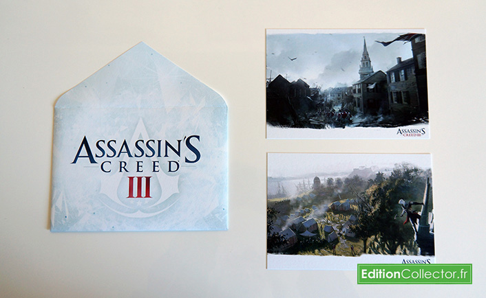 On poursuit avec une enveloppe Assassin’s Creed 3 qui renferme deux jolie lithographie sur papier cartonné.