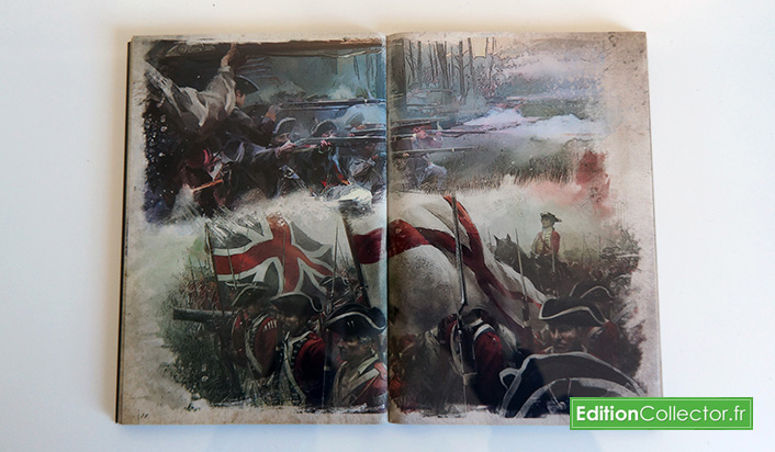 Viens ensuite le journal de George Washington accompagner de son marques-pages. Le livret fait exactement la taille d’un boitier dvd et renferme environ 70 pages de magnifiques dessins inspiré de la Révolution Américaine.
