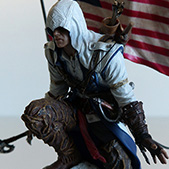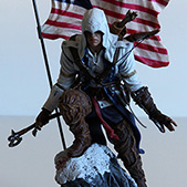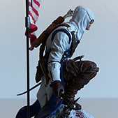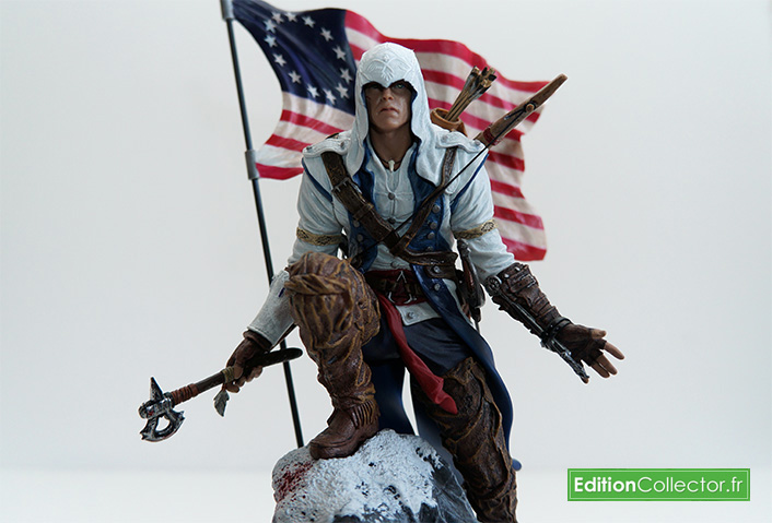 Et pour finir, le coffret renferme une magnifique figurine de Connor prenant la pause sur un rocher avec le drapeau Américain en font. Certain auront surement remarqué que cette figurine s’inspire, pour pas dire reproduit à l’identique le dessin de Alex Ross présent sur le steelbook.