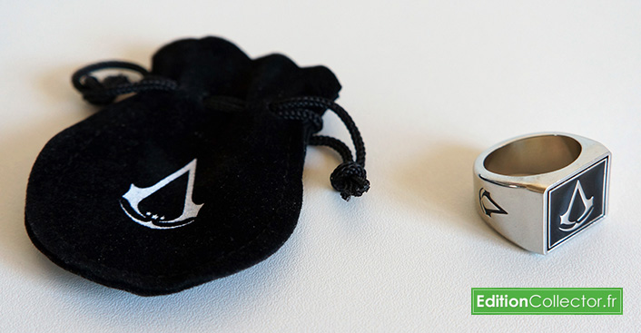 En bonus de pré-commande Micromania propose une superbe chevalière d’assassin avec sa petite pochette. Malheureusement elle est réservé pour ceux qui retire leur édition collector en magasin, néanmoins il est toujours possible de tenter sa chance et comme pour moi sur un mal entendu ça peu passer!