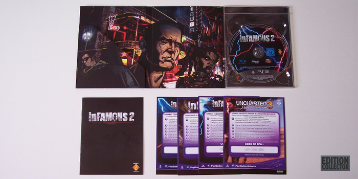 Comme d’habitude on a le droit à une petite fournée de DLC exclusif avec en plus une offre de -50% complètement inutile pour le premierinFamous puisque celui-ci est proposé gratuitement avec le programme Welcome Back. Encore une fois déçu que la B.O. ne soit pas sur cd, mais uniquement téléchargeable! A noté qu’il y a aussi le sésame pour accéder à la Beta de Uncharted 3 dès le 28 juin, soit une semaine avant tout le monde.