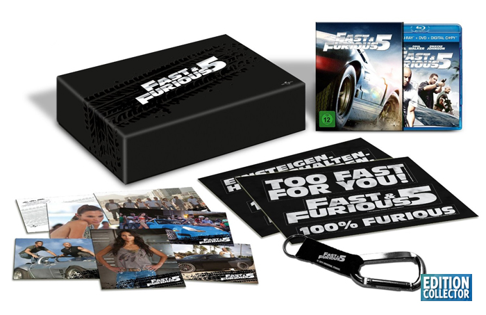Habituer à nous vendre de sympathiques coffrets des films à succès, la Fnac semble cette fois ne rien proposer pour le cinquième volet de la franchise Fast and Furious. Mais ne vous inquiéter pas puisque amazon.de proposera dès la rentrée un coffret collector en édition limitée contenant :