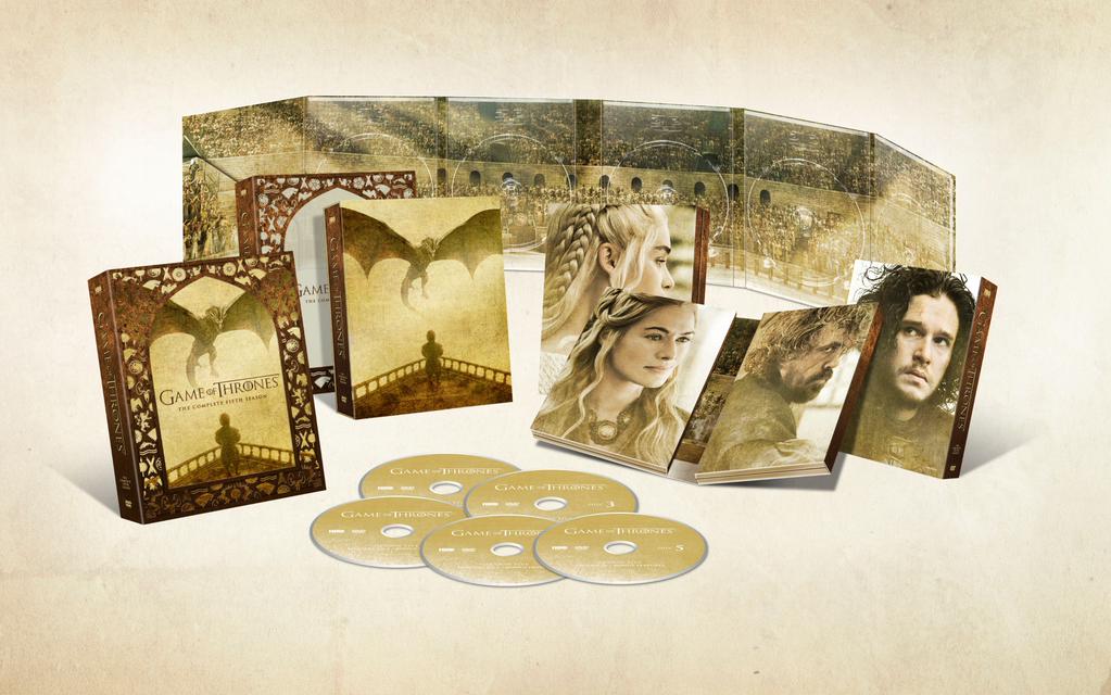 Pour ce qui est du véritable coffret intégral de la Saison 5 de GoT, celui-ci sera sans aucun doute comme les précédents, c’est-à-dire un fourreau en carton (2x moins épais que sur le visuel) avec un gros boitier amaray pour les disques.