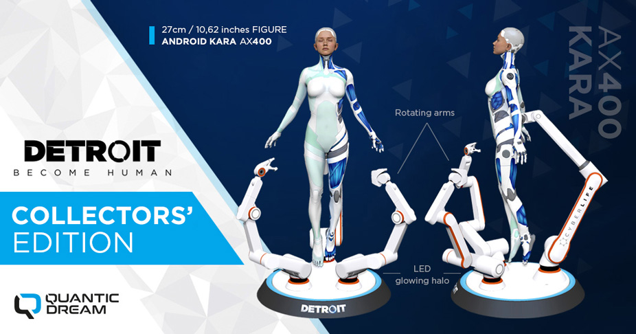 Cette fois le prix de l’édition collector de Detroit Becom Human sur PC avec la fameuse figurine de Kara est bien confirmé puisqu’elle est maintenant aussi disponible en pré-commande à 350€ sur la boutique de Quantic Dream ! A noter que la fiche produit n’est pas encore totalement remplie, du coup on encore aucune spécifications détaillé pour la figurine…