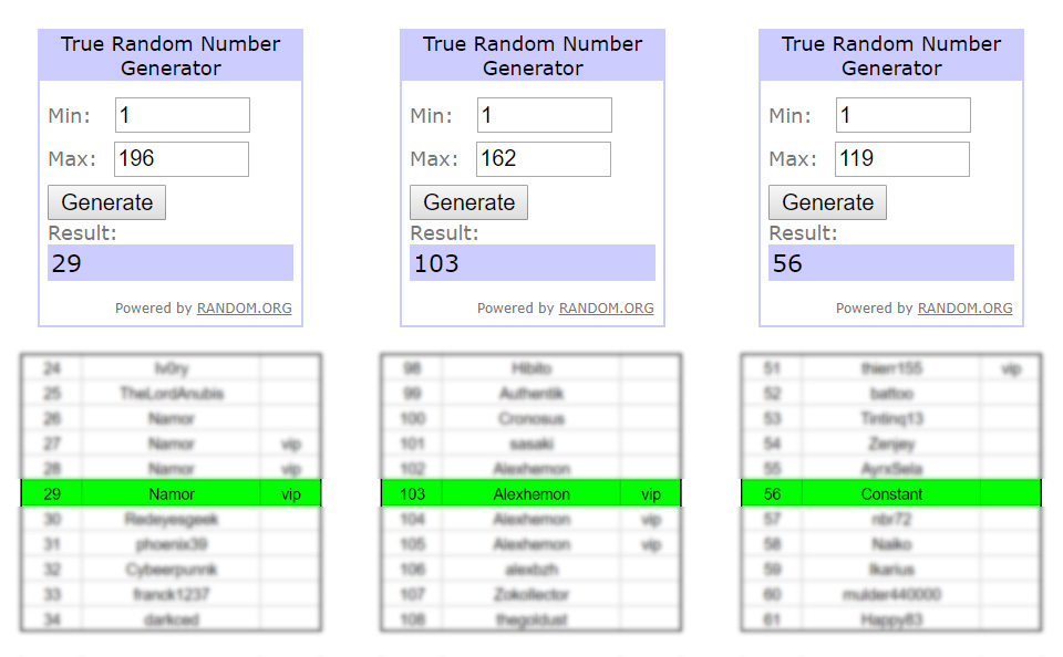 Félicitations aux gagnants et merci à vous tous pour votre participation ! Si vous n’avez pas gagné cette fois ne soyez pas trop pessimistes, car vous aurez comme d’habitude plein d’autres chances lors du prochain concours qui devrait d’ailleurs arriver assez rapidement. Du coup, n’oubliez pas de participer dans les commentaires et sur le forum, car c’est ce qui fait vivre le site et permet aussi de faire plus de concours ! En plus, cela vous permet également de bénéficier d’un petit bonus vip supplémentaire non négligeable pour les plus gros lots mis en jeu. ^^