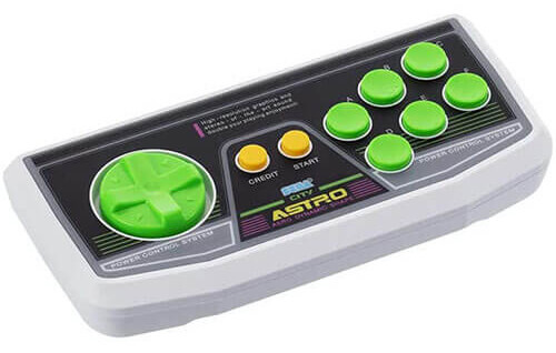 L’Astro City Mini est équipée de deux ports USB permettant de connecter les gamepads ou les sticks dédiés et aux couleurs de l’Astro City ! Des manettes avec croix de direction & 6 boutons, pour profiter entre amis des nombreux titres jouables à plusieurs joueurs et deux magnifiques Stick Arcade Premium, une édition avec stick et boutons vert et une autre en rose, pour rappeler les positions 1 & 2 joueurs de la borne originale (1P & 2P). Ces sticks sont d’une taille (35x24x11.5 cm) et d’un poids (3 kg) optimaux et équipés « Full Sanwa » pour retrouver les vraies sensations de l’arcade à domicile.