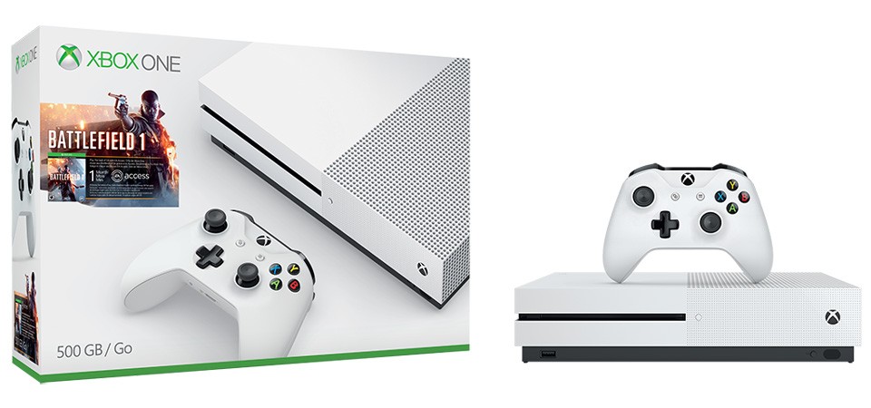 Le second bundle se contentera quant à lui simplement de la Xbox one S blanche standard de 500Go accompagné de la version standard dématérialisée de Battlefield 1, donc sans les bonus de l’édition deluxe cité juste au-dessus. Néanmoins, la console sera tout de même proposée à son prix de base, soit moins de 300€ et sera en plus elle sera disponible en avance le 13 octobre prochain !