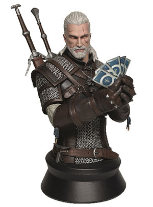 Un buste de Geralt en train de jouer aux cartes pour Gwynt