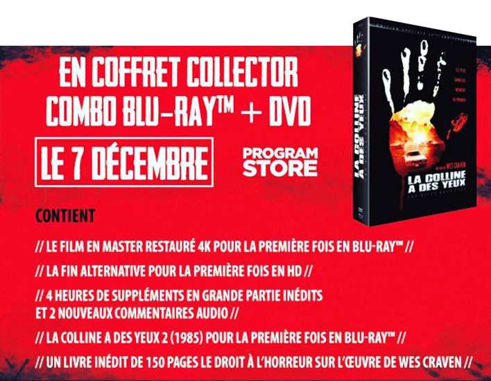 Prévu pour le 7 décembre prochain, le coffret collector de la colline a des yeux 1 & 2 est déjà disponible en pré-commande pour moins de 40€ sur la Fnac.