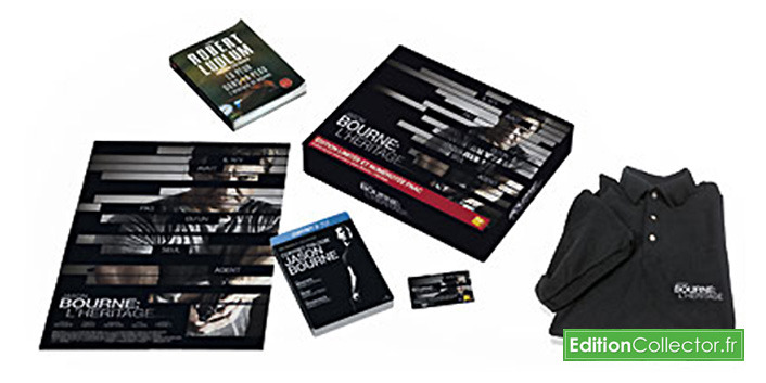 A l’occasion de la sortie au cinéma le 19 septembre prochain de Jason Bourne : L’héritage, la Fnac nous proposera quelques jours avant un sympathique coffret dont l’enseigne a le secret. Comme d’habitude celui-ci renfermera une carte cadeau de 25€ pour récupérer en magasin ou sur le site de la Fnac le blu-ray du film lors de sa sortie en janvier prochain. On trouvera également à l’intérieur de la boite le coffret blu-ray de la Trilogie Jason Bourne qui si mes souvenirs son bon prend la forme d’un boitier steelbook, le livre d’ Eric Van Lusbader d’après Robert Ludlum La peur dans la peau : l’héritage de Bourne, le Polo Jason Bourne : L’héritage (certainement en taille L) et enfin l’affiche officiel du film. Prévu pour le 14 septembre prochain le coffret est actuellement disponible en pré-commande pour 70€ avec 20€ offert en bon d’achat pour les adhérents. Même si ce n’est clairement pas le plus réussi des coffrets Fnac, je trouve que celui-ci a plutôt un bon rapport qualité/prix pour peu que vous n’ayez pas encore la trilogie Bourne et que vous êtes adhérents Fnac.