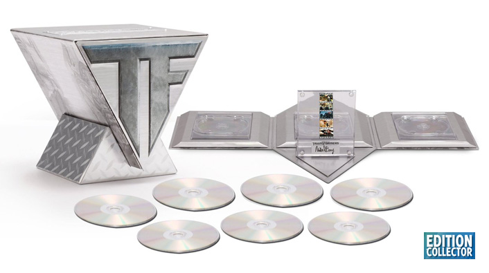 Décidément les éditions collector de la trilogie Transformers se multiplie comme des petits pains c’est derniers temps malgré la confirmation par Michael bay d’un épisode 4 et 5! Quoi qu’il en soit après un sympathique coffret Fnac et un joli collector en forme de tête chez Amazon.fr, un nouveau collector édition limitée de la Trilogie Transformers a fait son apparition de l’autre côté de l’atlantique. Celui-ci prend la forme d’un prisme pausé à l’envers sur un socle. Une fois déplier on découvre à l’intérieur les trois films sur blu-ray et DVD avec en plus la version 3D de Transformers 3 et un morceau de pellicule entre deux plaque de plexi signé par Michael Bay. Actuellement disponible en pré-commande sur Amazon.com moyennant après conversion plus de 105€, mais sans compter les frais de port ou le risque de douane! Et même si Paramount a prévu des pistes françaises sur chaque disques il y a de fortes chances que l’ensemble soit zoné A, mais c’est super logique ça! Finalement le collector en forme de tête proposer sur Amazon.fr me semble tout d’un coup être une bonne affaire! ![]()