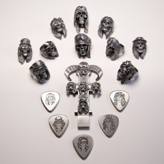 - 5 médiator en métal avec des visages et des signatures de crâne de bande