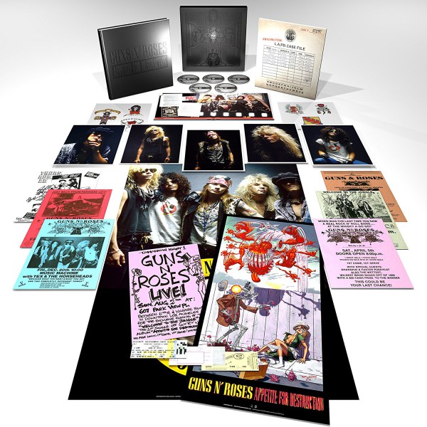 Après un bon petit teasing sur twitter, les Guns N’ Roses ont annoncé la réédition de leur tout premier album Appetite for Destruction avec pour l’occasion pas moins de 49 morceaux inédits ainsi qu’un énorme coffret collector !
