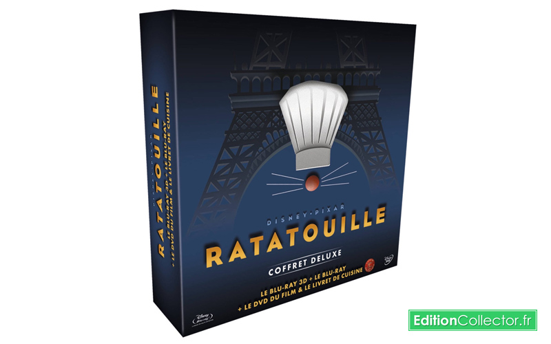 Alors que Disneyland Paris propose depuis cet été sa toute nouvelle attraction sur Ratatouille, les studios Disney ont quant à eux préféré attendre cette fin d’année pour surfer sur le succès de l’attraction et nous servir un petit coffret collector tout mimi de Ratatouille. Attendu pour fin octobre, cette édition renfermera bien évidemment le long-métrage animé en DVD, blu-ray et Blu-ray 3D active ainsi qu’une pelleter de bonus vidéo avec les classiques commentaires audio, scènes coupées et making of. Et pour accompagner le film dans ce très joli coffret, on trouvera un livre de recettes tiré de la collection L’atelier des chefs. Malheureusement, on n’a pas encore d’info sur l’exemplaire qui sera inclus, mais on croise les doigts pour que ce soit le bon gros guide broché de 240 pages sur la pâtisserie plutôt que les petites versions de poche. Mais vu la forme du coffret celui-ci nous réservera certainement une bonne surprise. Prévu pour 22 octobre prochain, ce petit coffret collector deluxe de Ratatouille est disponible en pré-commande pour moins de 28€ sur Amazon.fr et la Fnac. Et même s’il n’est pas non plus incroyable, il n’en reste pas moins une très bonne idée cadeau pour les prochaines fêtes de noël surtout si vous avez une gourmande ou un gourmand au fourneau !