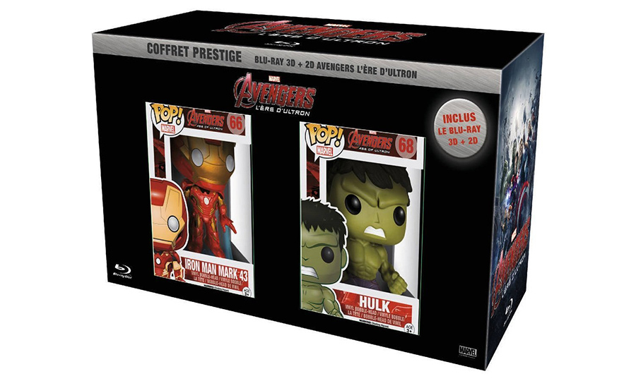 Alors que le film est encore au cinéma en train de faire des ravages au box-office mondial (même si un peu moins que le premier), Marvel a déjà dévoilé une petite édition Prestige pour Avengers 2 : l’ère d’Ultron. Et comme l’année dernière pour les Gardiens de la Galaxie, cette édition limitée proposera deux figurines Funko POP! accompagnées du Blu-ray 2D et 3D en boitier amaray bleu. Sans grande surprise, on trouvera donc la figurine d’Iron Man avec son armure Mark-43 qu’il porte dans le film ainsi que celle de Hulk le tout dans un packaging très similaire à celui de noël dernier. Reste à savoir si ce nouveau coffret s’arrachera aussi rapidement que le précèdent et atteindra les prix complètement fou actuellement sur Amazon. À noter, que les figurines Funko Pop ! Marvel du coffret seront bientôt disponible à l’unité autour de 15€ pièces et qu’actuellement, la série complète comporte exactement 55 figurines ! Si vous êtes fans ou collectionneur, n’hésitez pas à jeter un œil au récap complet réalisé par BobbyOneKenoby ici sur le Forum. Prévu pour le 26 août prochain, ce coffret prestige d’Avengers 2 : l’ère d’Ultron est disponible en pré-commande en exclusivité sur Amazon.fr pour moins de 50€.