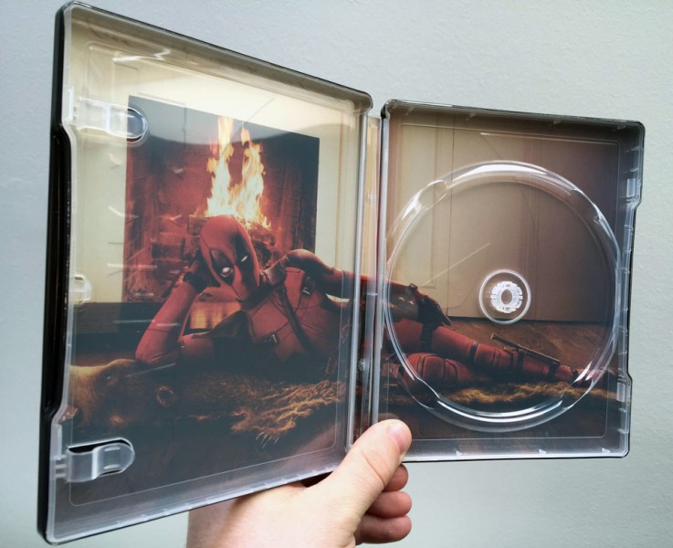 À l’intérieur, on retrouve bien évidemment notre anti-héros le plus comic de l’univers Marvel allongé sur sa peau d’ours devant un feu de cheminée. Enfin pour finir, le film étant produit et édité par la Fox, le titre sera bel et bien imprimé (en énorme) sur le boitier contrairement aux autres steelbook Marvel directement édité par Disney.