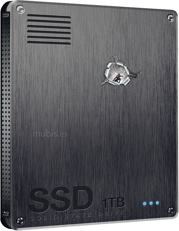 Alors que le steelbook spécial Fnac d’Ant-Man est déjà en rupture de stock, le visuel du boitier se dévoile aujourd’hui un peu plus grâce au site espagnol Mubis.es. Comme prévu, le steelbook prendra la forme d’un disque dur SSD avec pas mal de petits détails assez sympa comme les vis, le connecteur stata ou les codes barre au dos.