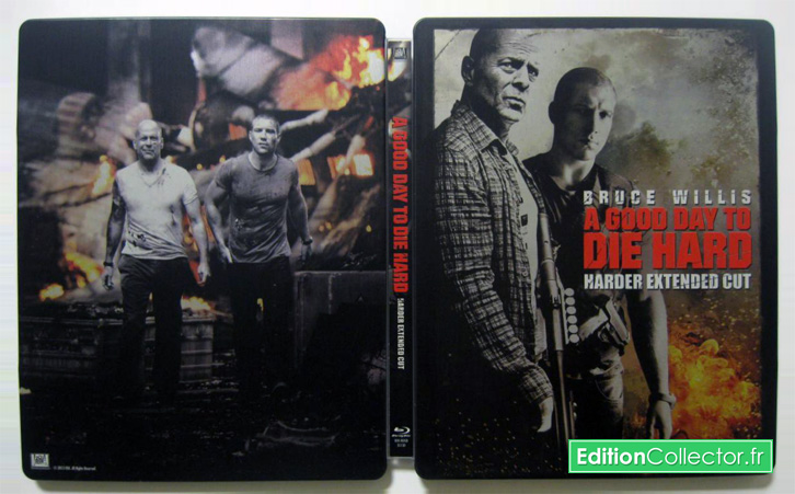 Bien qu’il ne soit clairement pas au niveau des précédents épisodes de la franchise, Die Hard 5 : une belle journée pour mourir n’est pas non plus le pire film d’action pop-corn de l’année ! Alors, oui le film reste une déception même quand on a apprécié le 4ème épisode lui-même déjà beaucoup critiqué. M’enfin pas au point de le descendre au rang de navet ou alors j’ai été aveuglé par mon attachement à ce personnage mythique qu’est devenu Jhon McLane. Quoi qu’il en soit la Fox nous a concocté une petite édition steelbook limitée du film. Comme d’habitude je croise les doigts pour que la bande rouge ne soit pas imprimée directement sur le boitier comme pour la version tchèque sur l’image en dessous. Sinon rien de bien originale à l’intérieur puisqu’on retrouvera uniquement la version longue du film sur blu-ray et DVD avec en plus pas moins de 2h de bonus. A noté que la version longue est un gros foutage de gueule puisqu’elle supprime carrément certaines scènes de la version cinéma et ne rajoute que 4 minutes de films en plus! Prévu pour sortir dans quelques jours avec la version blu-ray classique, qui au passage ne contiendra quant à elle que la version cinéma, cette édition limitée est encore disponible en pré-commande pour moins de 20€ sur Amazon. A noté également le joli doigt d’honneur que nous offre la FOX en annonçant un coffret Die Hard l’ultime collection regroupant les 5 films pour moins de 35€, alors qu’elle vient tout juste d’officialiser un 6ème épisode de la franchise avec Die Hardest…