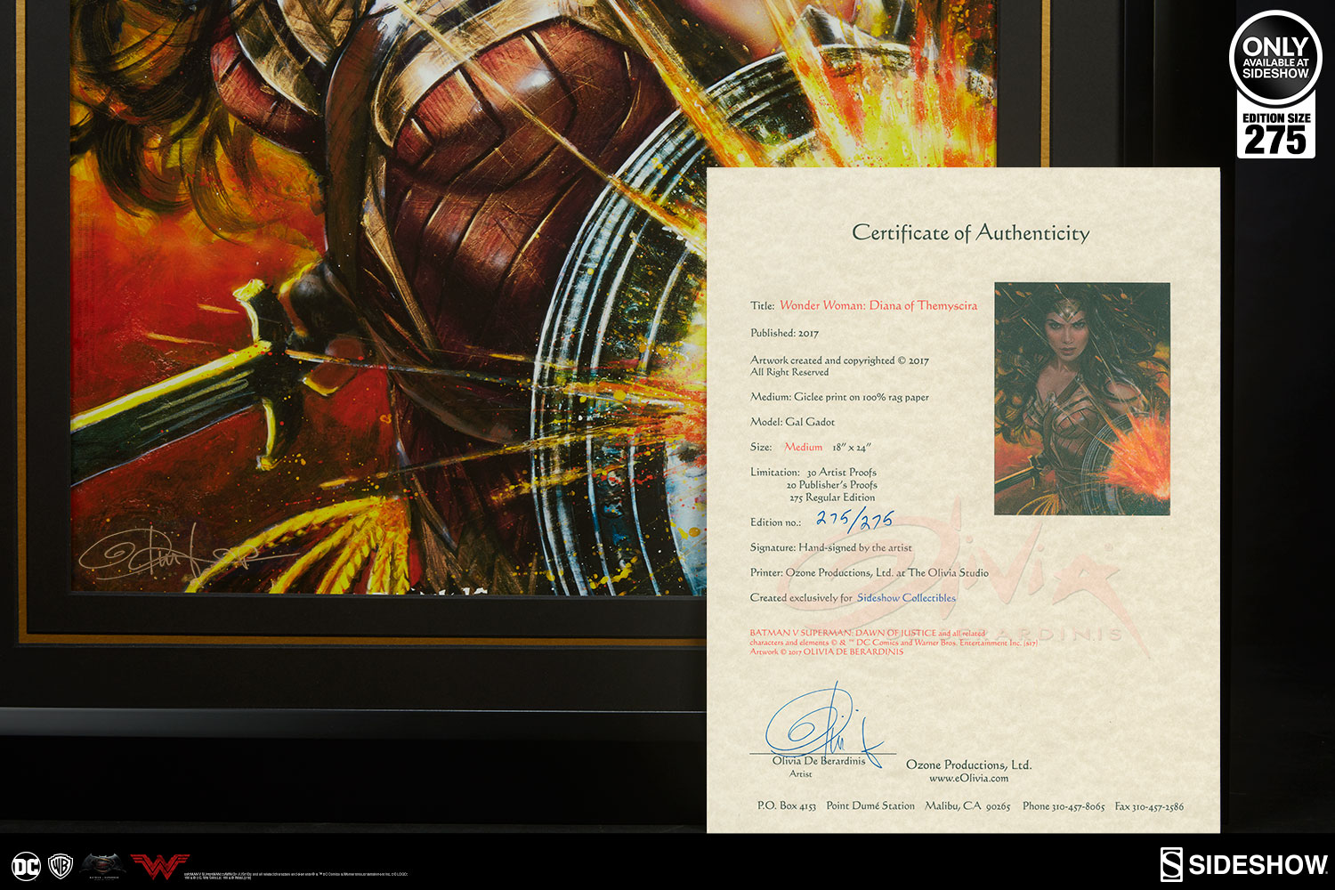 Chaque print est également numéroté et signé à la main par l’artiste avec comme toujours chez Sideshow le sceller d’authenticité embossé directement sur le print. Par contre, nouvelle politique de la boutique oblige, le print ne sera dans un premier temps uniquement vendu en version encadré pour 425$ ! (à partir du 2 juin entre 19h et 21h heures française).