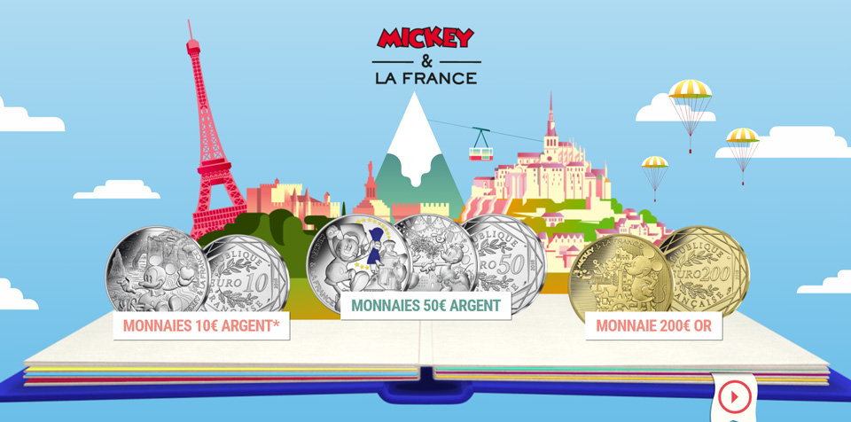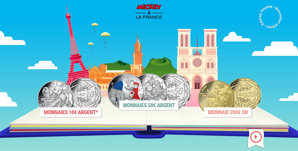 Pour fêter comme il se doit les 90 ans de la plus humaine de toutes les souris, la Monnaie de Paris édite pour l’occasion une belle petite collection de pièces à valeur faciale “Mickey & la France” !