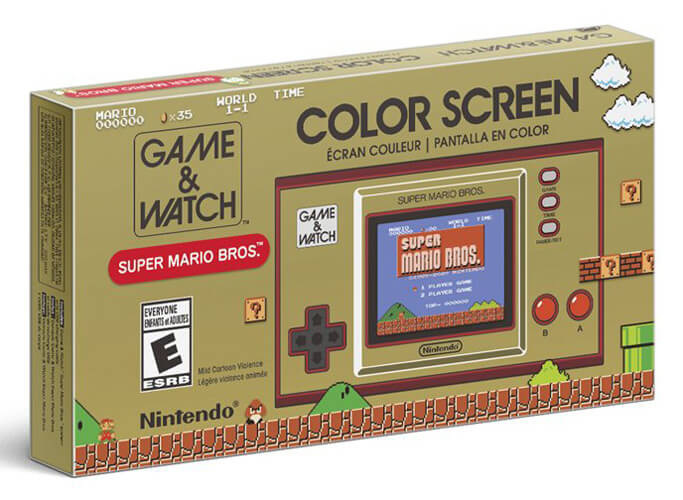 Celle-ci s’inspire évidement des consoles de l’époque avec en nouveauté un écran couleur et une croix directionnelle pour pouvoir jouer plus facilement à Super Mario Bros 1 et 2 ainsi qu’une version Mario du jeu Ball tout les trois inclus dans la console. Sinon on retrouve également la fameuse fonction horloge/montre numérique avec en prime des petites animations spéciales.