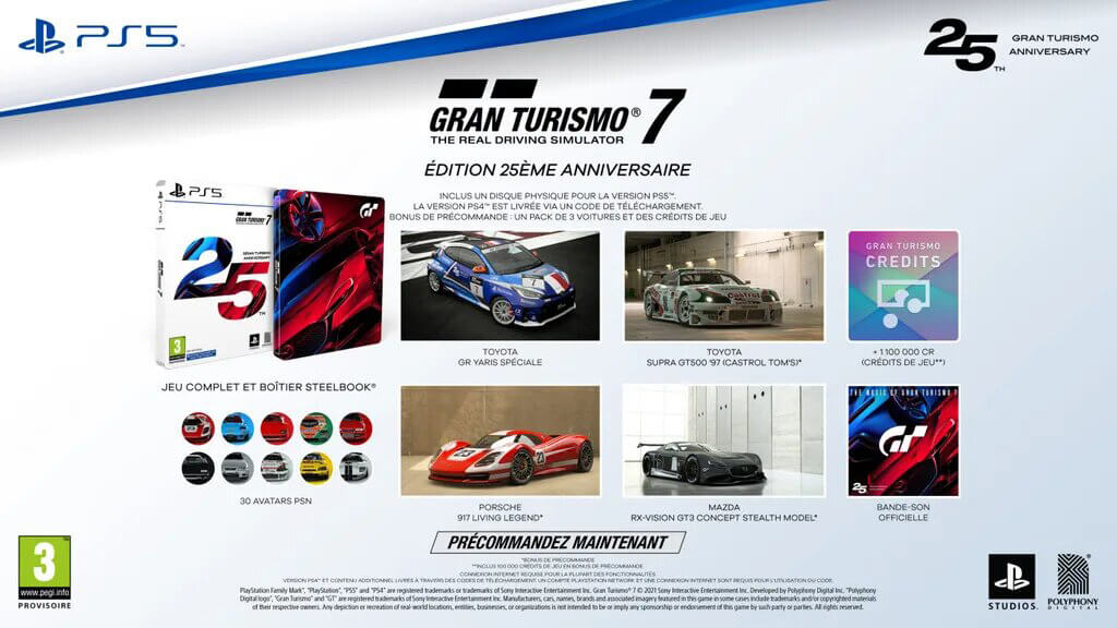 L'édition 25ème anniversaire de Gran Turismo 7 avec le superbe steelbook est maintenant disponible en pré-commande sur la Fnac !