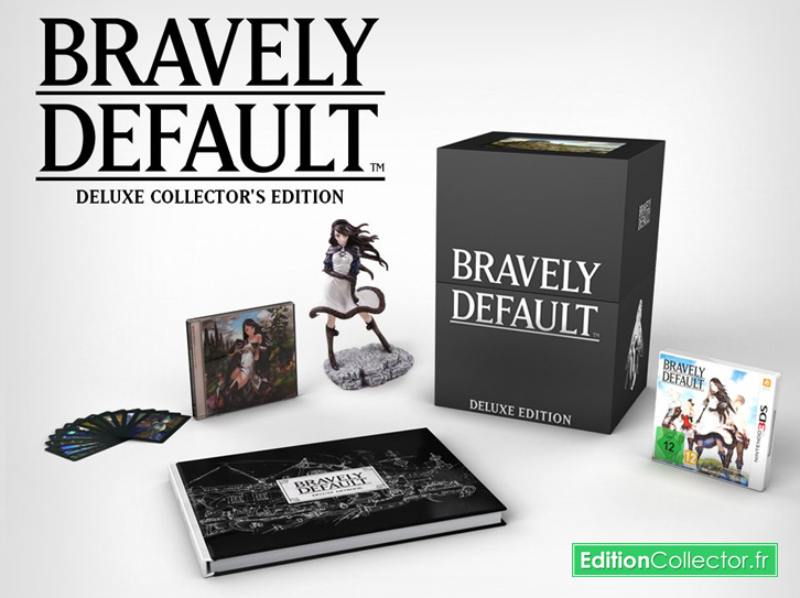 Après avoir fait durer le suspense quelques semaines, Nintendo s’est enfin décidé à nous dévoiler l’édition collector deluxe de Bravely Default que l’on nous avait promis lors du dernier Nintendo Direct. Attendu pour décembre prochain en France, cette édition embarquera bien évidemment un exemplaire du jeu sur Nintendo 3DS accompagné d’une figurine du personnage d’Agnès, d’un mini artbook, du CD de la bande original et pas moins de 34 cartes de réalité augmentée, le tout rangé dans une belle boîte. Prévu pour le 6 décembre prochain, cette édition collector deluxe de Bravely Default n’est malheureusement pas encore disponible en pré-commande, néanmoins cela ne devrait plus trop tarder. Bien évidemment, je vous tiens au courant dès que l’on a du neuf. Mais si cette édition vous fait vraiment de l’œil, compter une bonne soixantaine d’euros dans le meilleur des cas pour se l’offrir.
