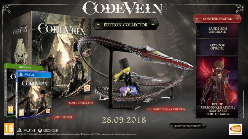 Désormais attendue pour le 27 septembre prochain, l’édition collector de Code Vein n’est a priori pas annulée et sera bien disponible pour la sortie du jeu. Par contre, on ne sait pas si elle sera de retour en pré-commande ou si le stock a vraiment été liquidé l’année dernière lors des pré-commandes (voir maj précédentes).