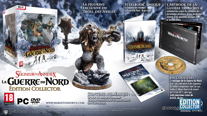 C’est lors d’une conférence de presse ce 14 juillet dernier que Warner Bros a annoncé le collector européen du Seigneur des Anneaux : La Guerre du Nord, déjà disponible en pré-commande sur Amazon.fr pour la modique somme de 80 €. Il n’y a toutefois aucune informations ni visuel officiel sur la page du web-marchand pour confirmer son éventuel contenu :