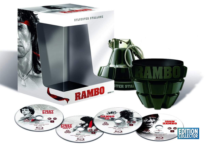 Le contenu embarquera le strict minimum avec les 3 premiers films entièrement remastérisé cette fois-ci, reprenant les différents bonus du coffret DVD de 2003, ainsi que de nouveau commentaires audio et autres scènes coupées inédites. A noter que seul le Royaume-Uni inclura le 4e film sortis en 2008 et intitulé John Rambo alors que le reste de l’Europe se verra amputé de ce dernier puisque Studio Canal ne bénéficie pas des droits d’exploitation chez nous… Vendu sur Amazon.fr pour une somme inférieure à 60€, je trouve scandaleux de devoir payer une simple trilogie à ce prix alors que nos homologue anglais bénéficieront sur Amazon.co.uk d’une quadrilogie pour le même prix. ![]()