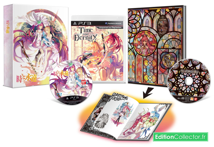 Les fans de RPG japonais doivent être aux anges depuis que Namco Bandai a annoncé il y a quelques mois que le jeu Toki kowa débarquera finalement dans le reste du monde sous le nom de Time and Eternity. Et pour couronner le tout, l’éditeur Nis Amercia a même prévu pour l’occasion une sympathique édition collector. Celle-ci contiendra dans une boite exclusive un exemplaire du jeu accompagné d’un superbe petit artbook avec couverture rigide (mais quid du nombre de pages ?), le CD de la bande originale ainsi qu’un poster double vision de 92x60cm. Pour rappel, le titre met en scène une jolie demoiselle qui possède une double personnalité au point d’agir comme deux personnes bien distinctes, mais dans un même corps. A noté pour finir que même si le jeu est bien en 3D, il utilise de magnifiques sprites en 2D dessinés à la main, et que les animations ont été réalisées par le studio japonais Satelight a qui l’on doit entre autres les épisode de Fary tail et Ken le survivant. Prévu en exclusivité sur PS3 pour le 28 juin prochain en même temps que l’édition simple, cette édition collector de Time and Eternity est encore disponible en import sur le site de l’éditeur pour moins de 65$ (environ 50€).