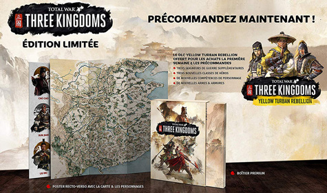 Prévue pour le 7 mars 2019, cette édition collector de Total War Three Kingdoms est déjà disponible en pré-commande sur la boutique officielle du jeu pour moins de 150€. À noter également que la petite édition limitée sera aussi disponible chez nous sur toutes les boutiques habituelles. Comme toujours, je vous tiens au courant avec une petite mise à jour de l’article dès l’ouverture des pré-commandes pour cette dernière.