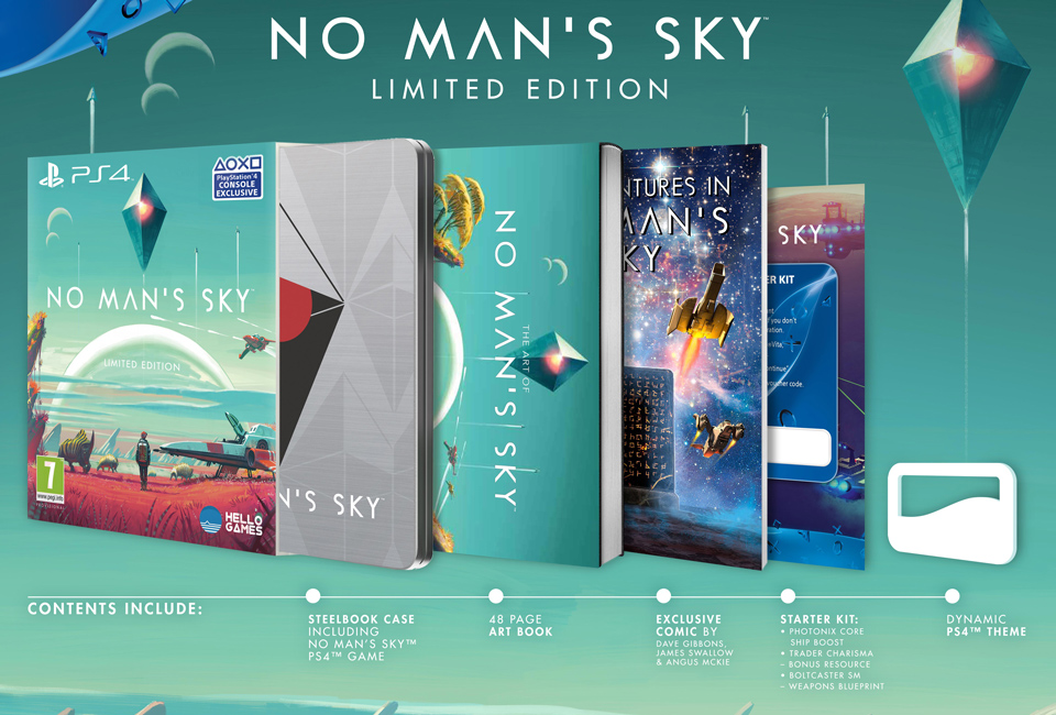 Dévoilée le mois dernier sur le Playstation blog officiel, l’édition limitée de No Man’s Sky est enfin disponible en pré-commande pour moins de 80€ sur Amazon.fr. Pour l’instant, aucune autre enseigne ne propose cette édition, mais cela ne devrait certainement plus tarder avec peut-être des bonus de pré-commande plus intéressant que le bonus in-game d’Amazon.