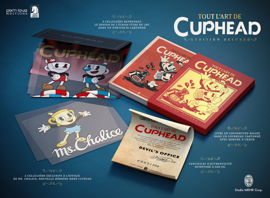 Comme prévu, l’édition deluxe limitée et numérotée à 666 exemplaires de l’artbook de Cuphead en français est maintenant disponible en exclu sur la boutique de Pix’n Love à 70€ (soit 25€ de moins que la version deluxe en anglais) !
