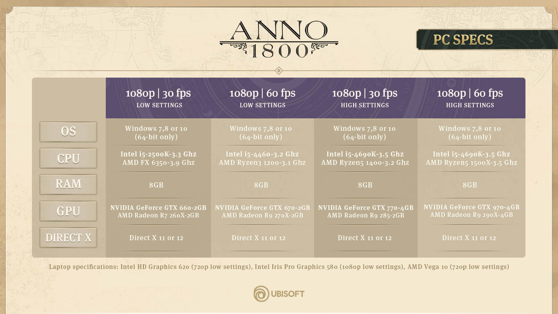 En plus des configurations PC nécessaires pour profiter pleinement du jeu, Ubisoft a également dévoilée une petite bande annonce pour l’ouverture de la beta publique de Anno 1800 qui se tiendra du 12 au 14 avril (le weekend prochain). Une bonne occasion de tester le jeu avant de craquer…