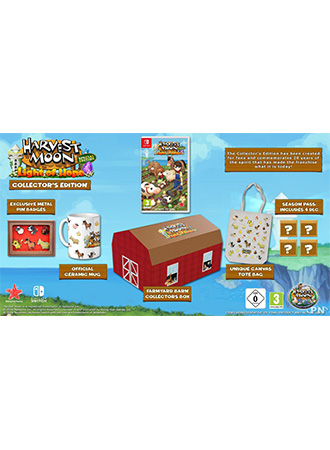 Notre édition collector européenne (visuel juste au-dessus) proposera bien évidemment le jeu en version physique avec le Season pass et 4 DLC mystérieux. Et l’on trouvera également quelques goodies pour accompagner le jeu avec un mug, un sac en toile et 6 pin’s exclusif dans leur petite boite, le tout rangé dans un beau coffret en forme d’étable de la ferme de barn !