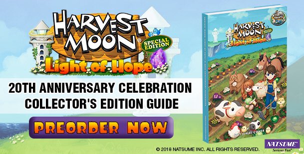 Pour finir, le jeu aura également droit à un guide collector qui célébrera également le 20ème anniversaire du premier Harvest Moon sortie sur Super Nintendo en 1998 !