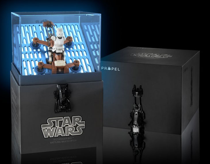 Pour l’instant, seul quatre drones ont été annoncé avec la speeder bike du Retour du Jedi, le X-Wing, le Tie Avanced de Dark Vador ainsi que le Faucon Millénium, mais celui-ci sera visiblement décalé à l’année prochaine.
