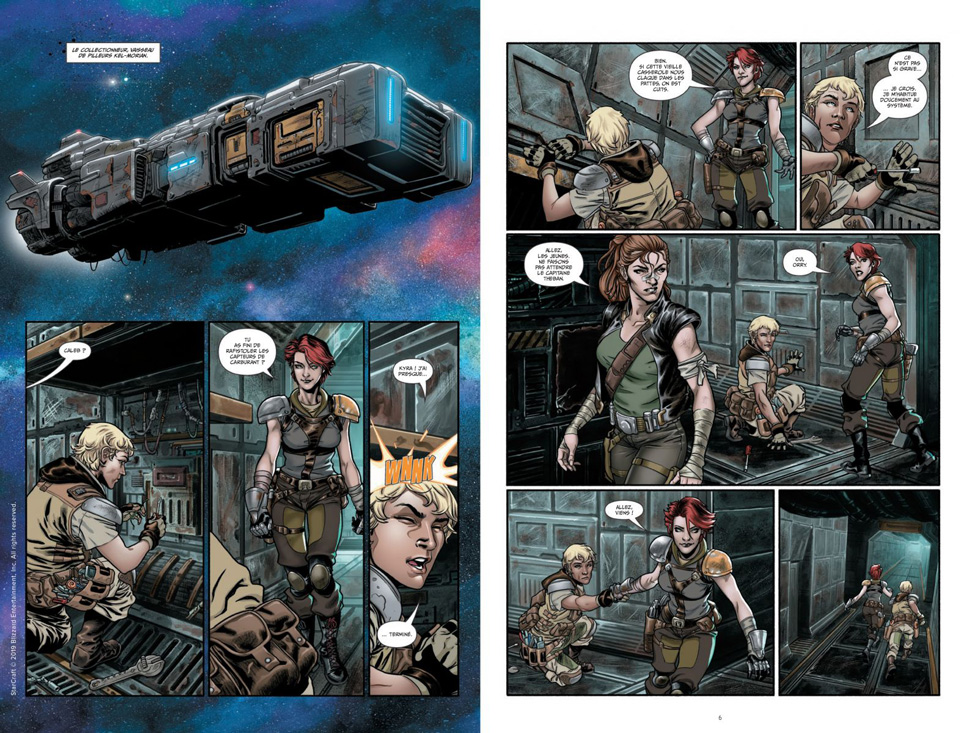 De son côté la BD (104 pages au format ~19x 28cm) propose l’histoire d’un jeune ingénieur inexpérimenté qui se joint à un groupe de pirates de l’espace pour une mission qui s’annonce très lucrative : piller un vaisseau protoss abandonné. Cependant, l’expédition n’est pas sans risque, car non seulement la police du Dominion rôde dans le secteur, mais la carcasse va bientôt s’écraser sur une planète. C’est donc une course contre la montre qui commence pour la bande de pillards : parviendront-ils à s’emparer du butin à temps ? Et sont-ils vraiment seuls à bord ?