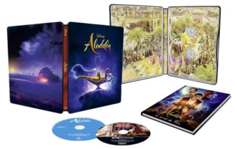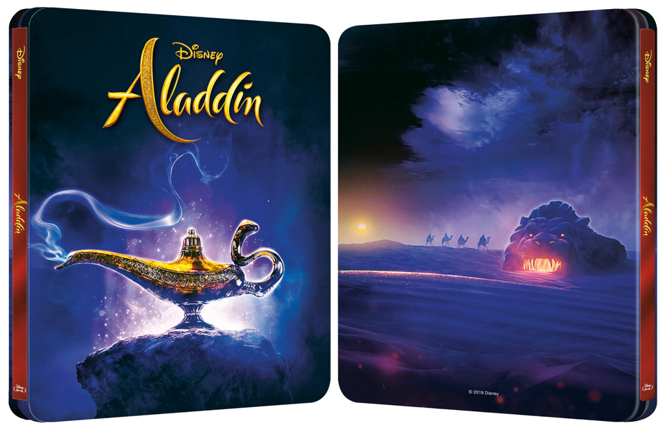 Mise à jour le 30 juillet 2019 : La Fnac vient de confirmer les visuels du steelbook de Aladdin avec le titre sur le dos (au lieu des portraits) ainsi qu’un livret exclusif de 72 pages inclus !