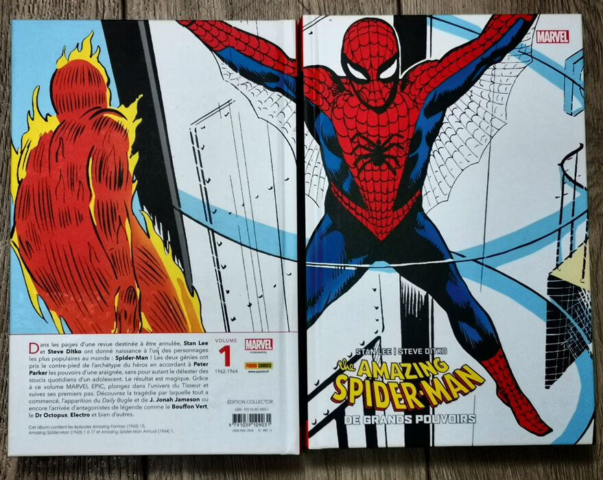 Description éditeur : Peter Parker est un étudiant sans histoire qui tente seulement de survivre à la jungle de son lycée pour que sa Tante May et son Oncle Ben soient fiers de lui. Mais lorsqu'il est mordu par une araignée radioactive, il se voit investi de pouvoirs sensationnels, dont il use d'abord pour son profit personnel. Mais un drame va lui apprendre que de grands pouvoirs impliquent de grandes responsabilités, et il va devenir Spider-Man, un justicier qui va affronter une multitude de super-vilains colorés, parmi lesquels le Vautour, Électro ou le Docteur Octopus ! Nouvelle collection pour mettre en valeur de grandes périodes classiques des séries Marvel ! À la façon des albums EPIC consacrés à l'univers Star Wars et sortis ces derniers mois, nous vous proposons dans ce format économique de larges paginations en format broché ou cartonné, au choix, pour des ouvrages consacrés à des chefs-d'oeuvre du "vintage". Et pour lancer la collection et à l'occasion des 60 ans de Spider-Man, c'est le Tisseur qui ouvre le bal avec deux albums !