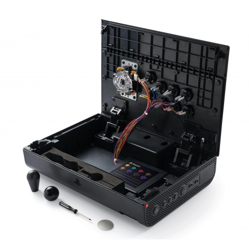 Intégré au côté droit du plateau, le panneau de contrôle inclut tous boutons de navigation PlayStation, dont le pavé tactile, ainsi que les boutons de sélection de la plateforme (PS4 et PS3) et de configuration du joystick (Gauche / Droit ou croix directionnelle). Deux formats de joystick (balltop ou battop), trois artworks de couverture (dont celle de SoulCalibur VI choisi par Kayane en exclusivité pour Cultura et un tournevis sont inclus pour permettre aux joueurs de personnaliser leur arcade stick.