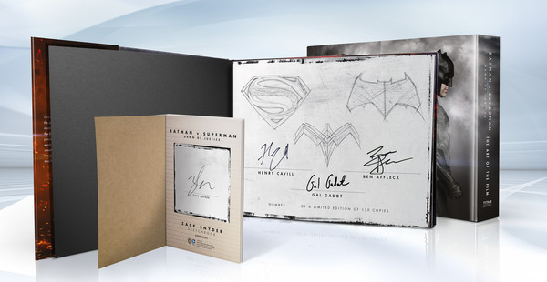 Edition limitée : 150 exemplaires dans le monde signé par Henry Cavill (superman), Gal Gadot (Wonder Woman), Ben Affleck (batman) + livret de croquis signé par Zack Snyder