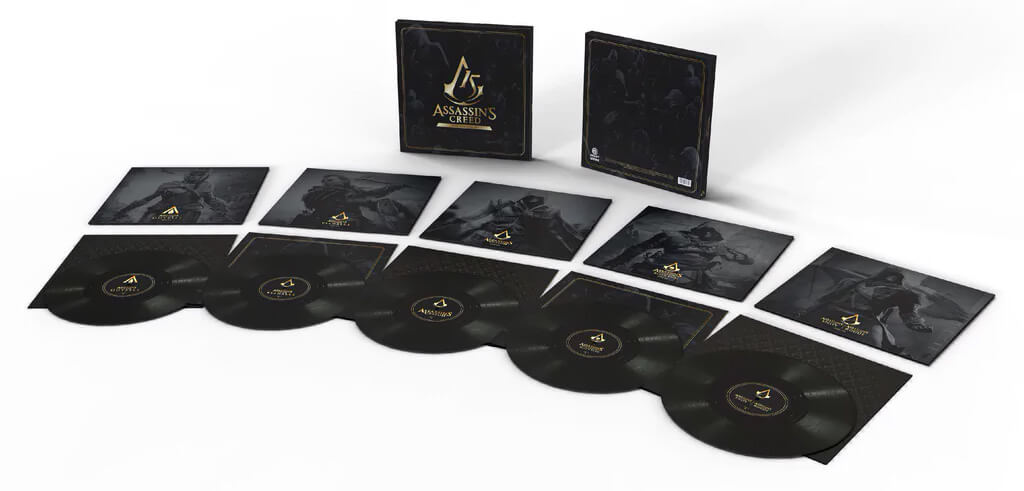 Pour ceux qui ont raté la version limitée en vinyle doré, le coffret 5 vinyles noirs pour le 15ème anniversaire de la saga Assassin's Creed est dispo en stock sur les boutiques habituelles depuis quelques jours/semaines !