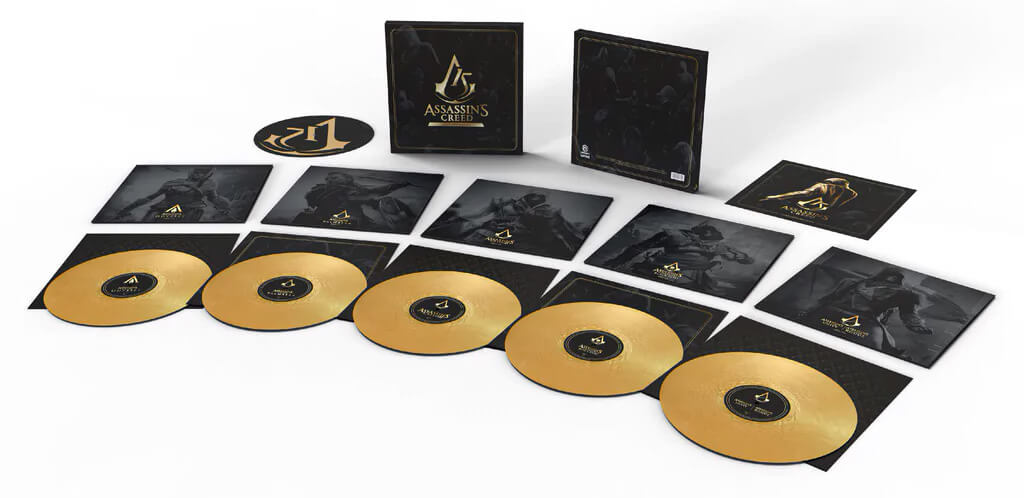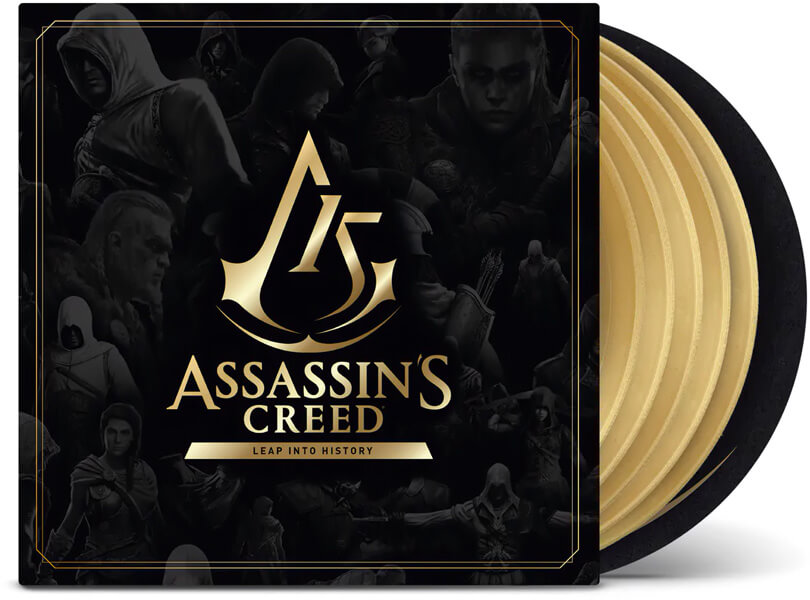 Description éditeur : Dans le cadre des célébrations du 15ème anniversaire d' AC , Ubisoft et Laced Records ont créé Assassin's Creed - Leap Into History - un coffret spécial en vinyle de 5 disques couvrant 12 jeux de la série historique. Cette édition limitée (exclusive à la boutique Laced) comprend des disques "pépite d'or", un slipmat personnalisé avec le tout nouveau logo du 15ème anniversaire et une impression d'art de 30cm.